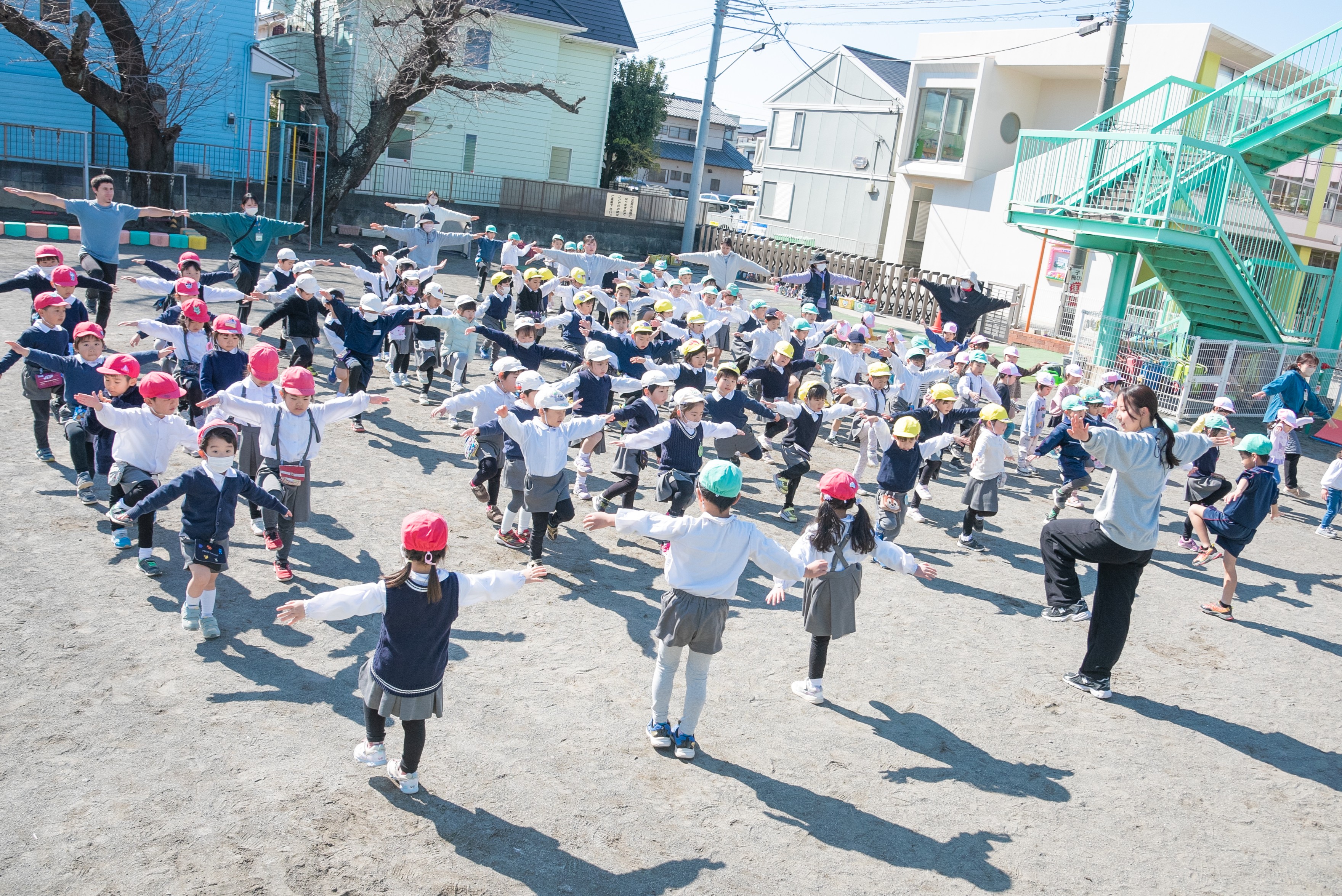 天気の良い日は園庭に出て、よいこの体操・行進をします。