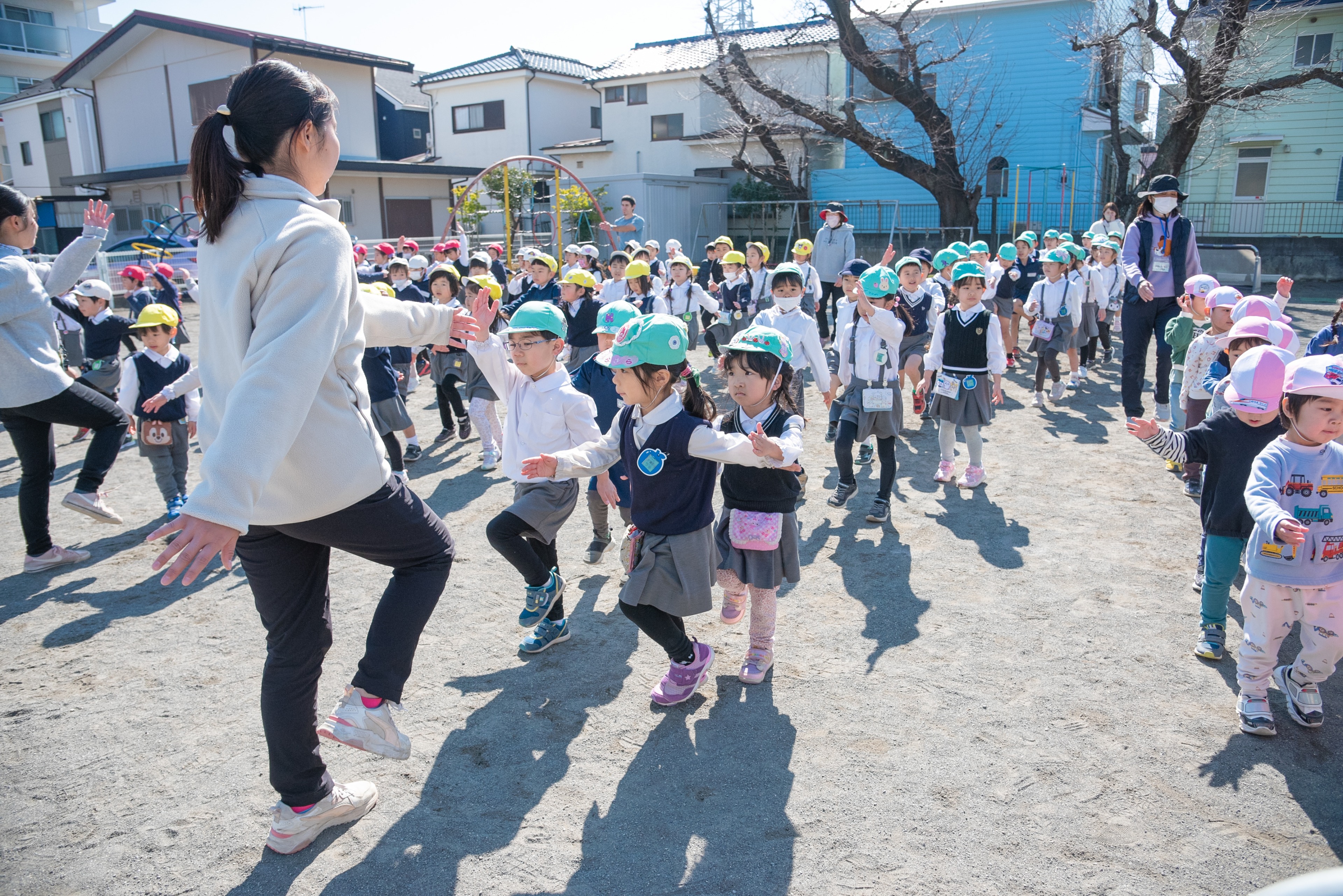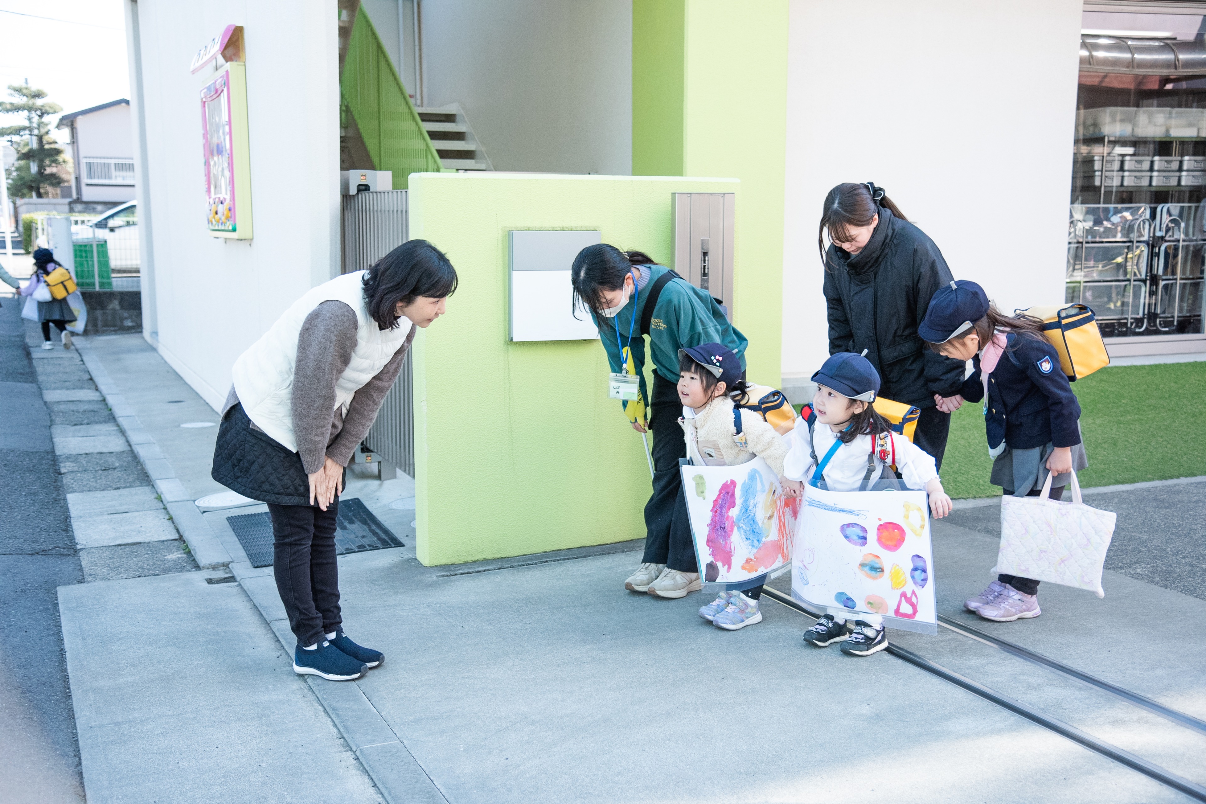 徒歩通園は教師が付き添います。