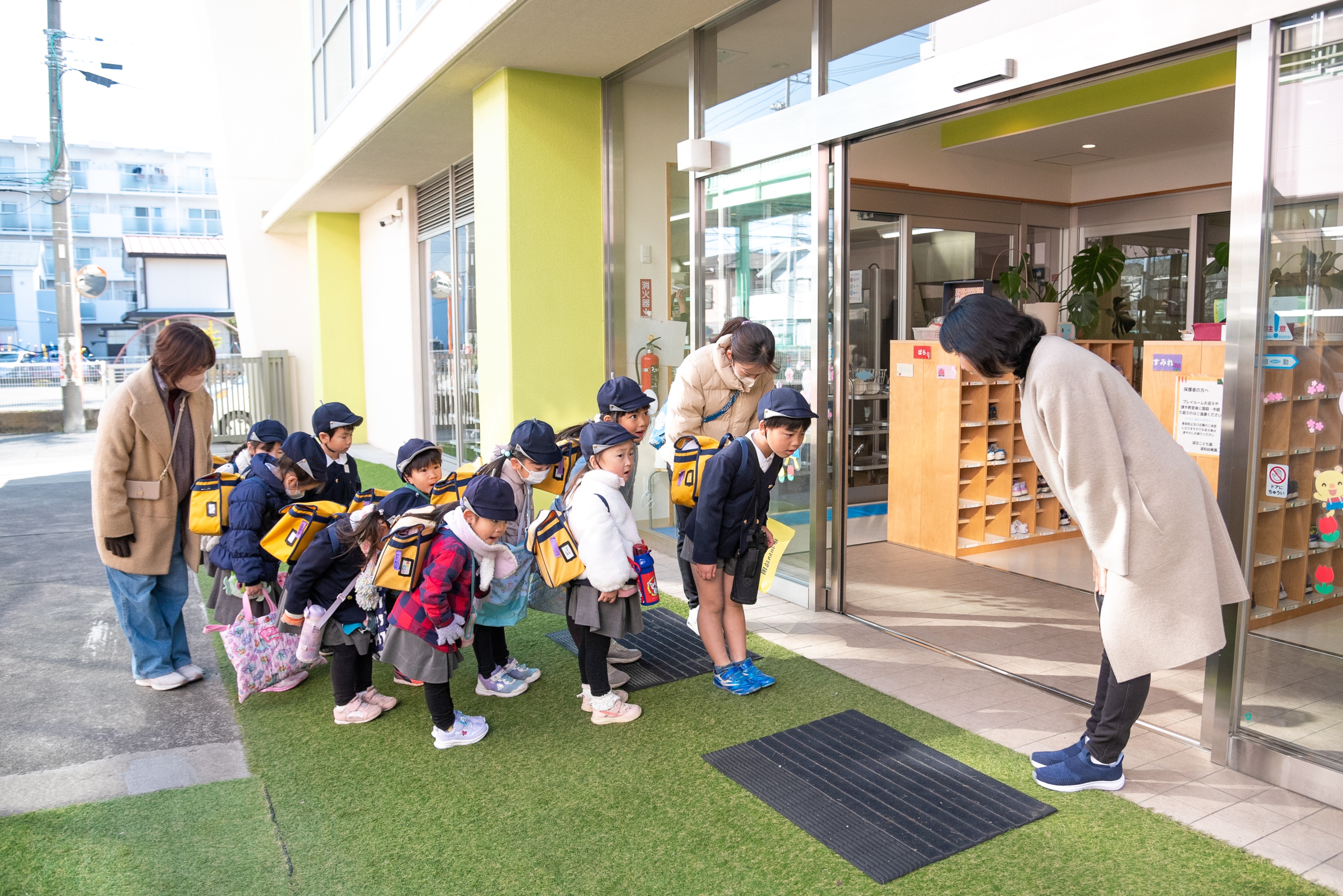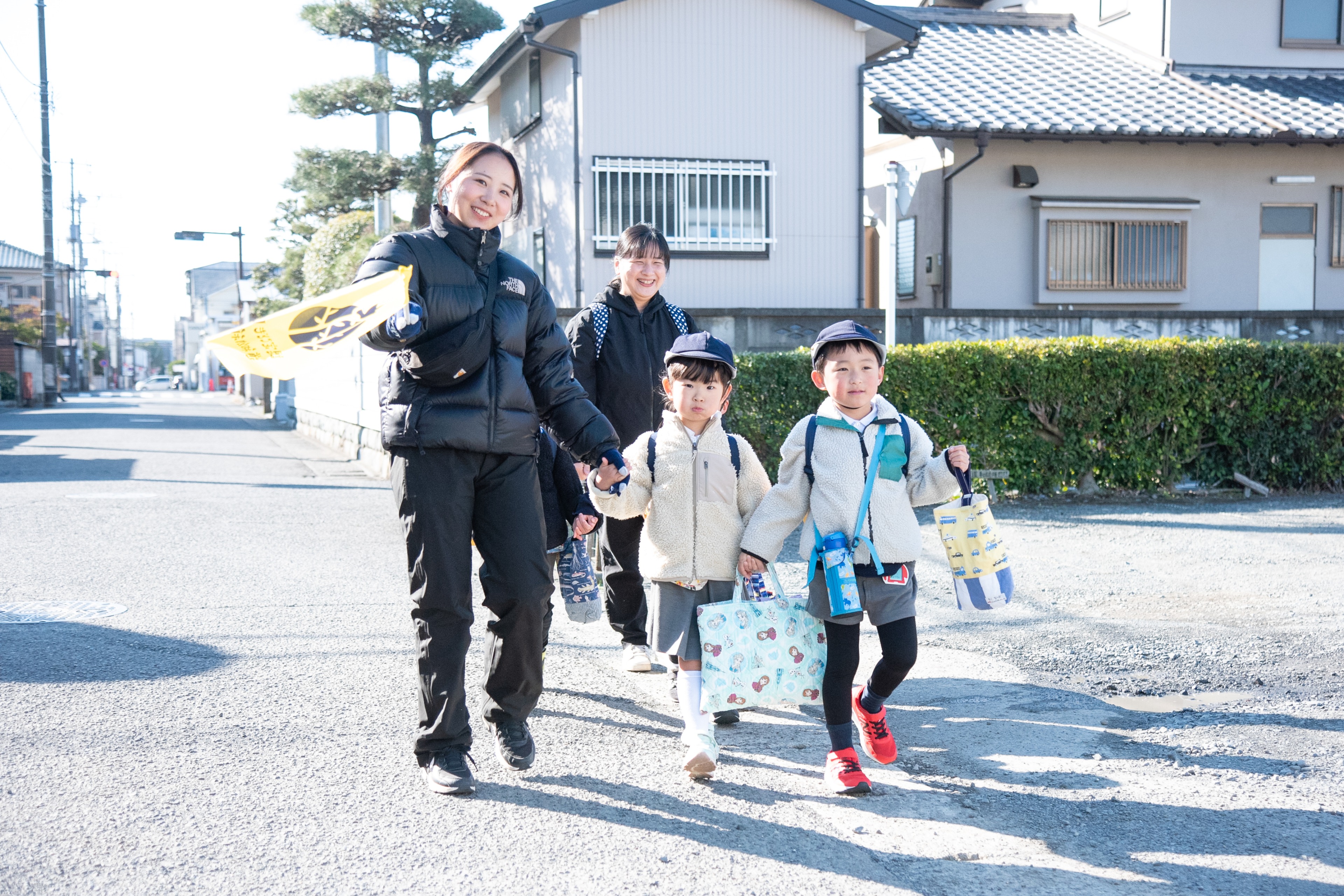 徒歩通園は教師が付き添います。