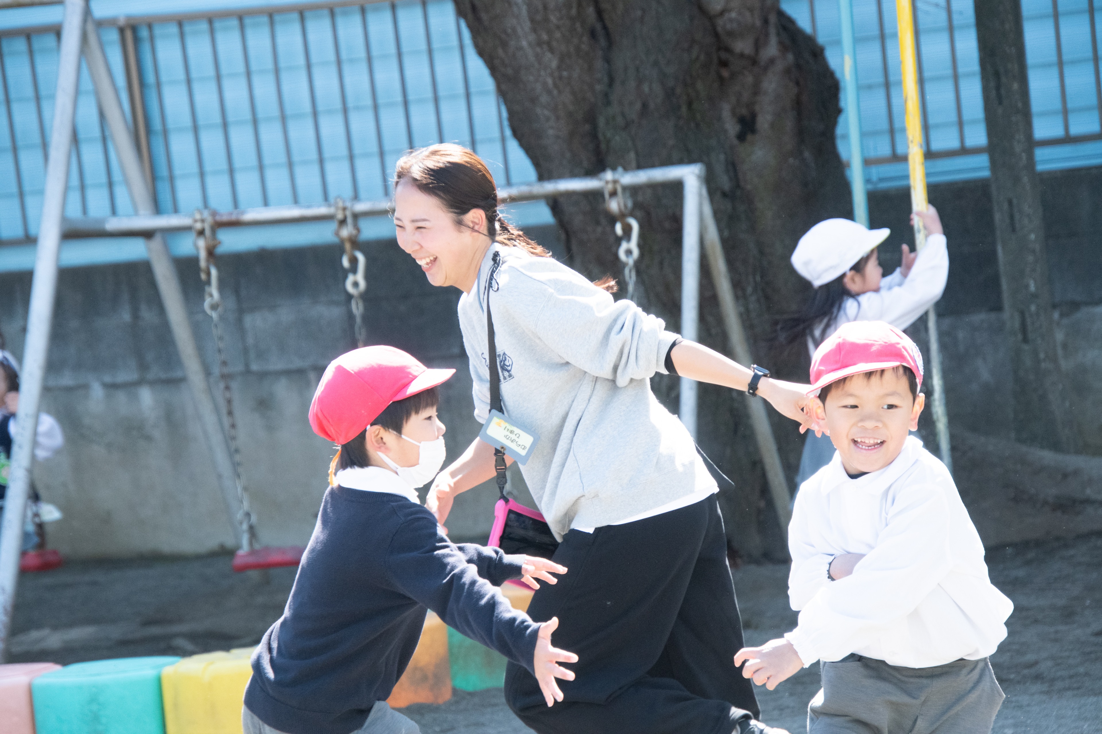 歌や合奏などをしたり、年長になるとボール取り、まりつき、バトンリレーなどにも取り組みます。